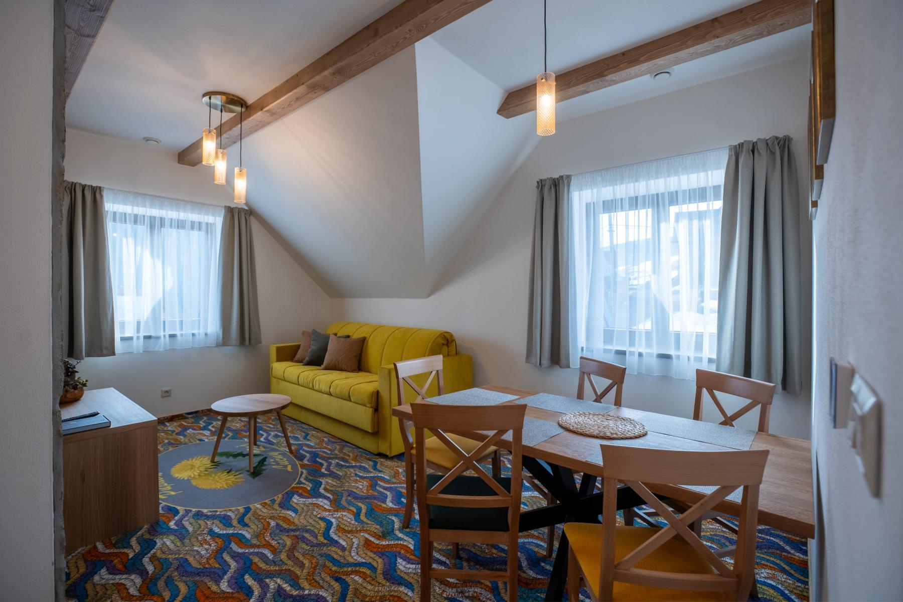 Náš apartmán je vybavený samostatným WC a sprchovým kútom, aby bol váš pobyt čo najpríjemnejší. Okrem toho vám ponúkame aj sušič vlasov, aby ste mali vždy dokonalý vzhľad. Pobyt s domácim zvieratkom nie je povolený.