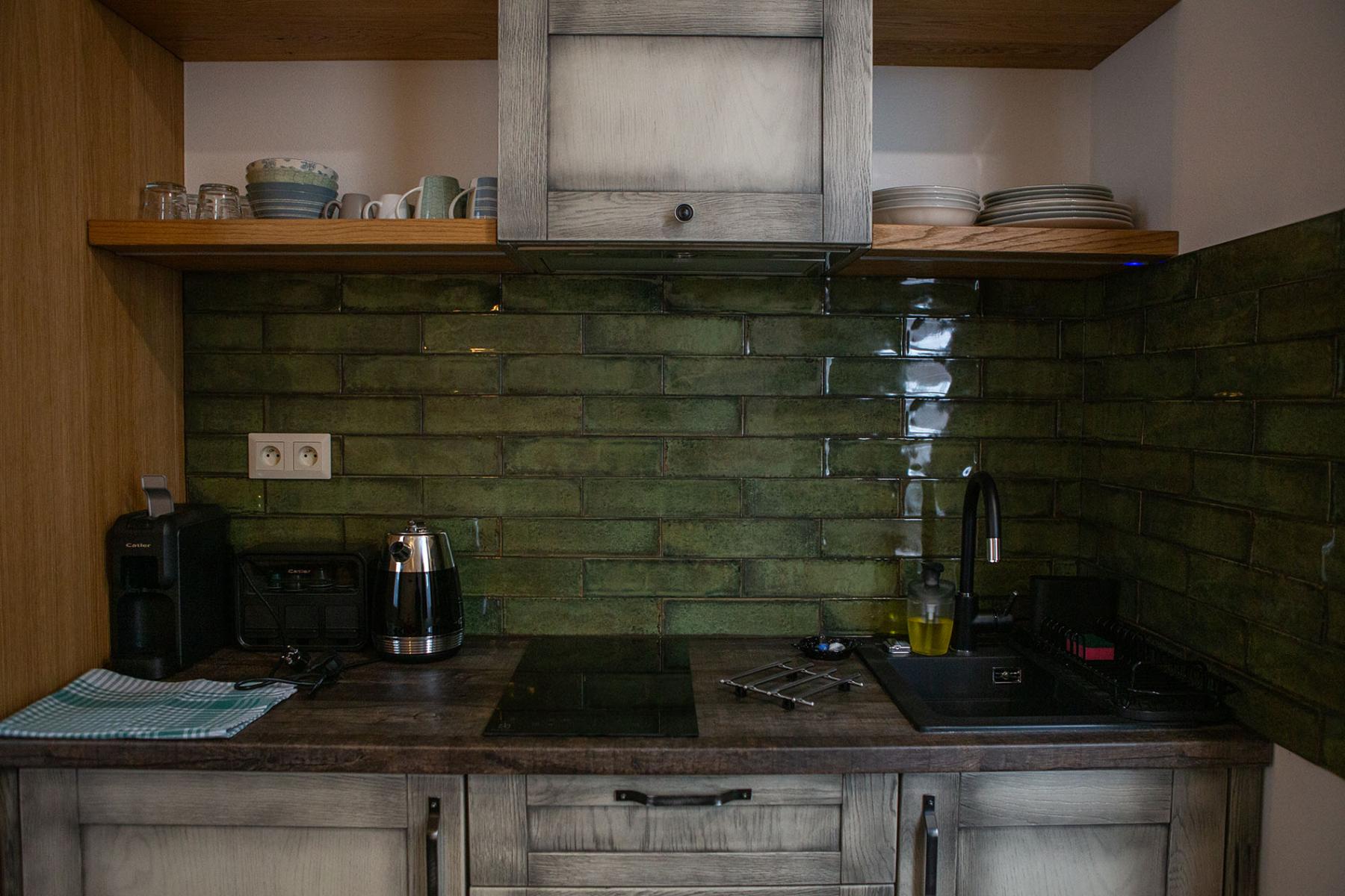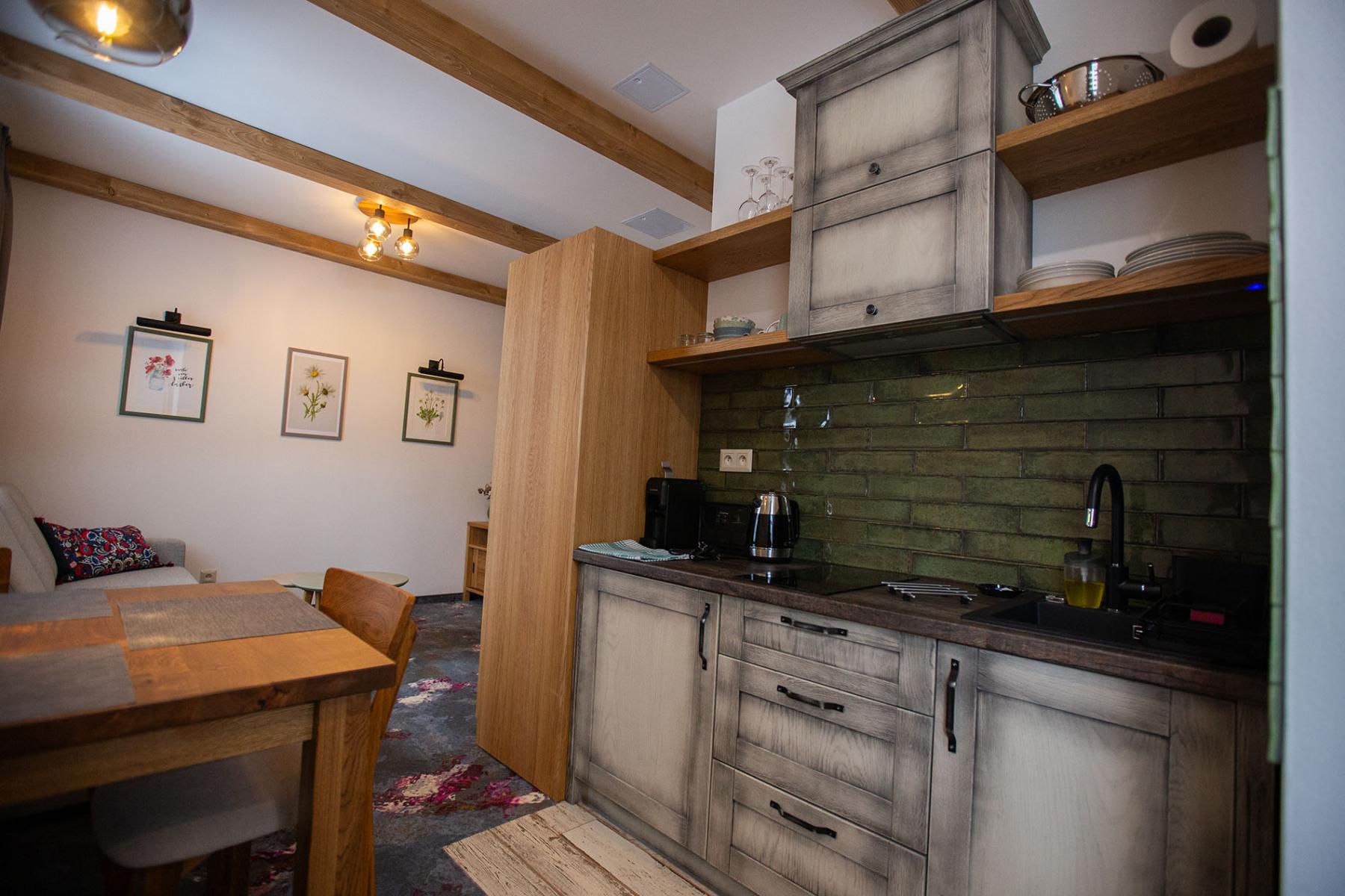 V plne vybavenej kuchyni nájdete všetko potrebné na prípravu chutných jedál pre seba a svojich blízkych. K dispozícii sú vám elektrická varná platňa, mikrovlnná rúra a rýchlovarná kanvica, čo vám umožní pripraviť si vaše obľúbené pokrmy bez problémov.