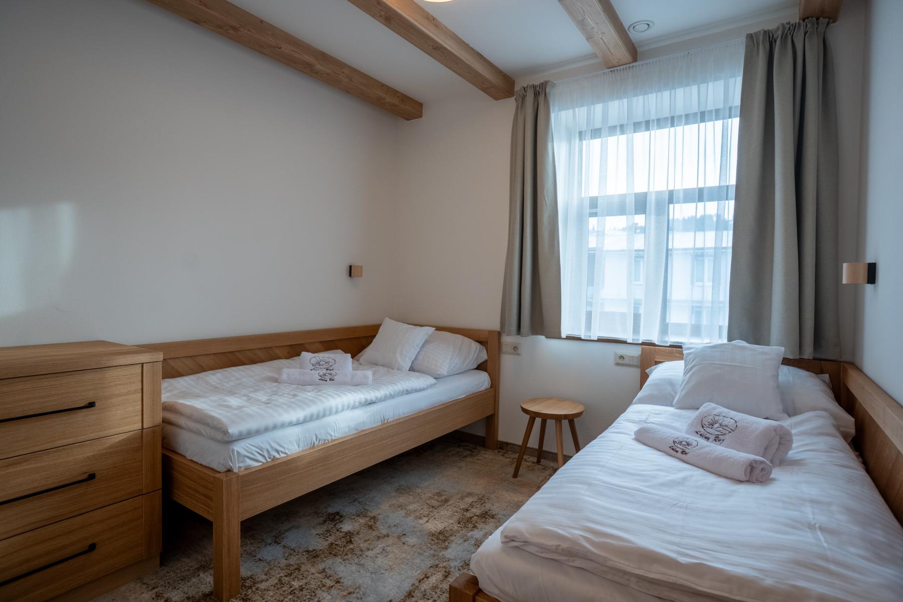 Ponúkame vám priestranný trojizbový apartmán Astra s rozlohou 54 m2 a maximálnym obsadením 4+1 osôb, kde sa budete cítiť ako doma. Nájdete v ňom dve samostatné spálne , v prvej sa nachádza pohodlná manželská posteľ, v druhej dve oddelené postele, ktoré poskytnú dostatok súkromia pre rodiny aj skupiny priateľov.