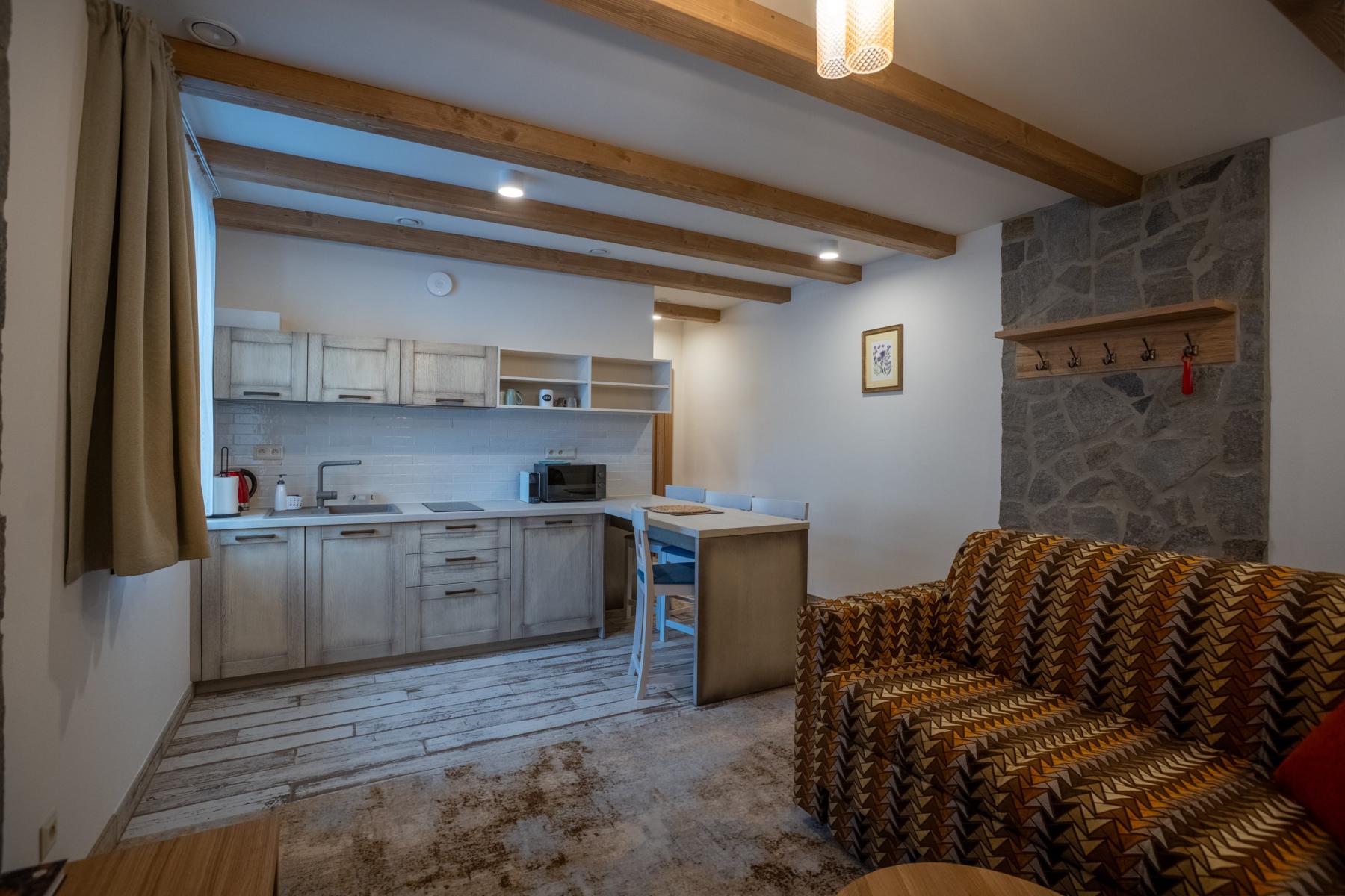 Užijte si dokonalý pobyt v našom konfortnom dvojizbovom apartmáne Zvonček, ktorý ponúka úplné pohodlie a moderné vybavenie pre vašu dovolenku v nádhernom prostredí Bachledovej doliny. S rozlohou 42 m2 a maximálnym obsadením 2+2 osôb. Zvonček, ktorý sa nachádza na prízemí apartmánového domu je ideálnym miestom pre páry či menšie rodiny, ktoré hľadajú príjemné a útulné ubytovanie.